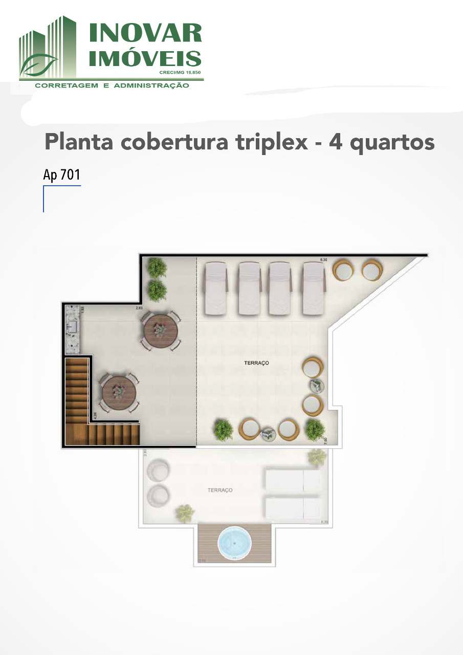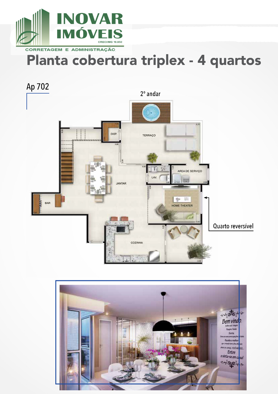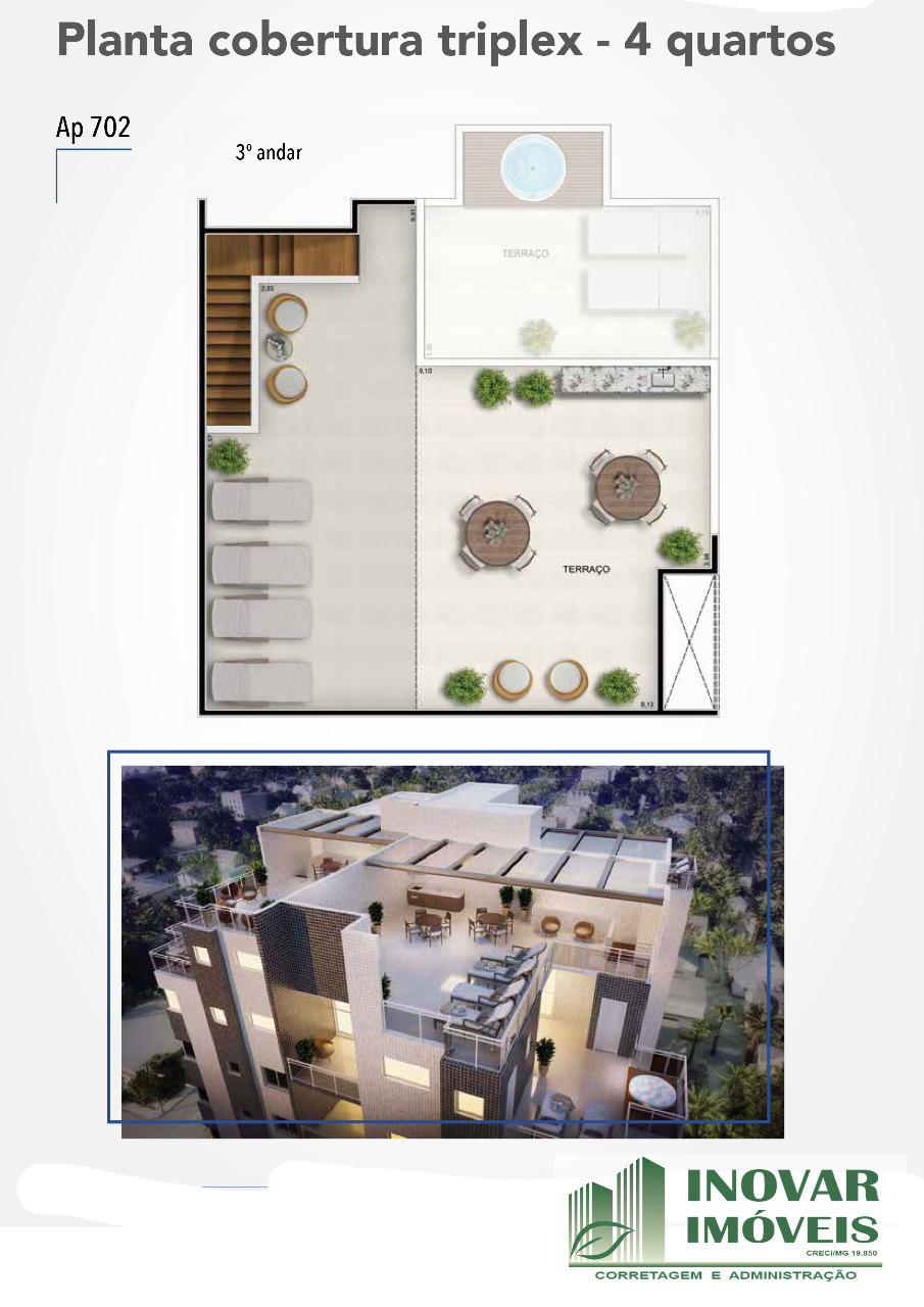 01 cobertura, com 04 quartos, 2 vagas na garagem.
